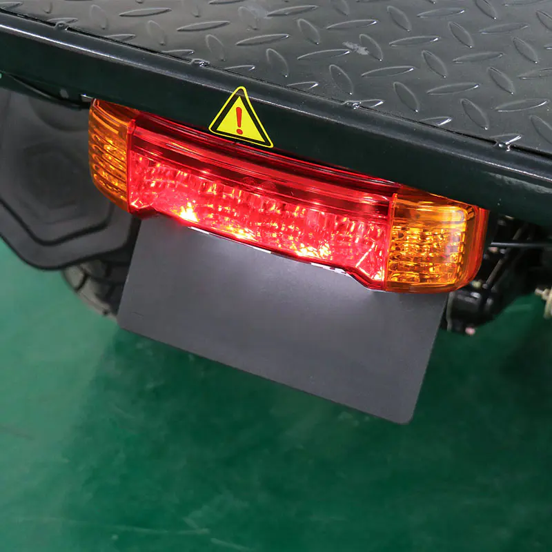 يمكن أن تصل Max Speed إلى 60 كم في الساعة مع نطاق 100 كم. يمكن أن يدعم إطار فراغ 12 بوصة ، أداءً مستقرًا. فرامل القرص الأمامية ، فرامل الأسطوانة الخلفية ، تأكد من مسافة فرامل أقصر. إذا كنت لا تزال قلقًا بشأن قدرة التحميل ، الحجم الكبير للبليت والإطار القوي ، تأكد من تحميل شحن 800 كجم بسهولة.